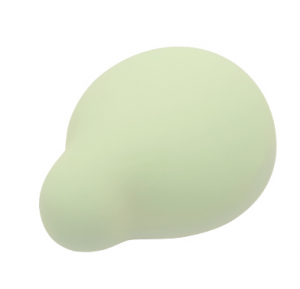 淡い緑色の丸みあるフォルムをしています。少し細い先端を使って、ピンポイントに振動を与える楽しみ方も。